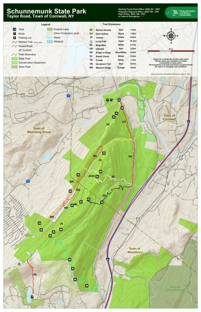West Hudson Trails Map, 2019: Storm King State Park, Schunemunk